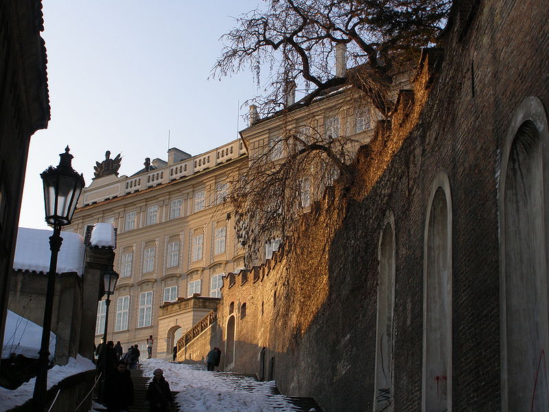 Zamek na Hradczanach to budowla, której historia sięga 870 roku i jest to prawdopodobnie największy zamek na świecie. Na początku wybudowano tutaj kościół pw. Marii Panny, później na jego miejscu powstała warownia. Przez szereg lat budowla była przebudowywana i rozbudowywana, do dziś zachowały się cztery pałace, dwa kościoły, ogrody, i dziewięć innych budynków. Do dziś w zamku przechowuje się czeskie klejnoty koronne.